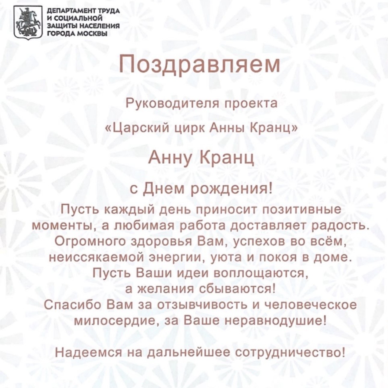 Уважаемые клиенты, праздничная компания Анны Кранц с радостью принимает предложения, направленные на популяризацию авторских программ и компании в целом.