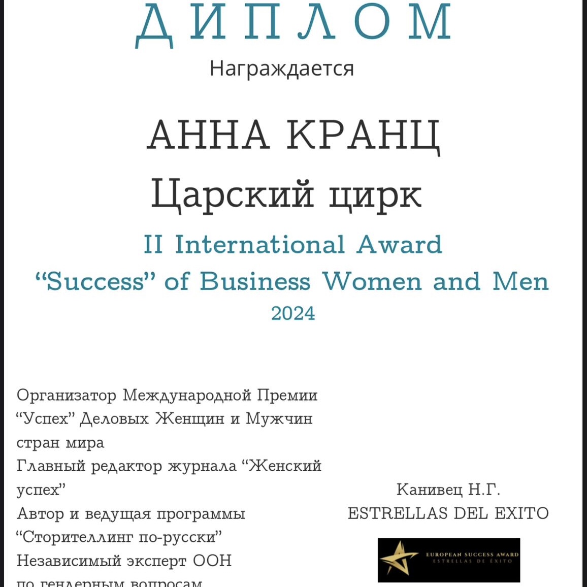 С уважением к Вам, Анна Кранц и компания.